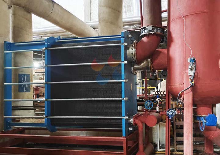 糖廠廢蜜粘度較高,流動性差,因此廢蜜冷卻器采用普瑞普勒(北京)公司可拆式寬流道板式換熱器,以更好的通過性、傳熱性能、承壓性能,保證廢蜜的流動性和通過性,用冷卻水將廢糖蜜進行冷卻,從而降低廢蜜的溫度,以便更好的存儲及應用。普瑞普勒(北京)公司寬流道板式換熱器作為廢蜜(桔水)冷卻器在甘蔗制糖行業得到了廣泛認可。